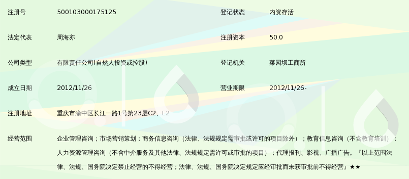 重庆菲斯克企业管理咨询有限公司,2012年11月26日成立,经营范围包括企业管理咨询等。