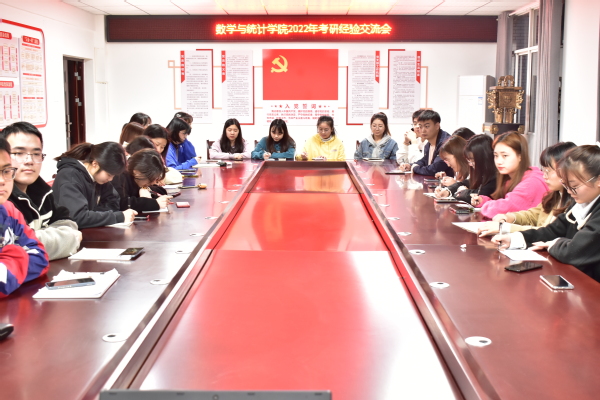 (通讯员 王朝青 赵鑫钰)4月25日晚上,yh533388银河在钩深楼附楼216会议室开展考研交流会。此次交流会由叶发强老师主持,公司高等数学教学部主任杨世显、统计系主任李好奇、魏丽然老师以及考研学子代表何佳玲、景佳欣主讲,公司2019级部分同学参加。