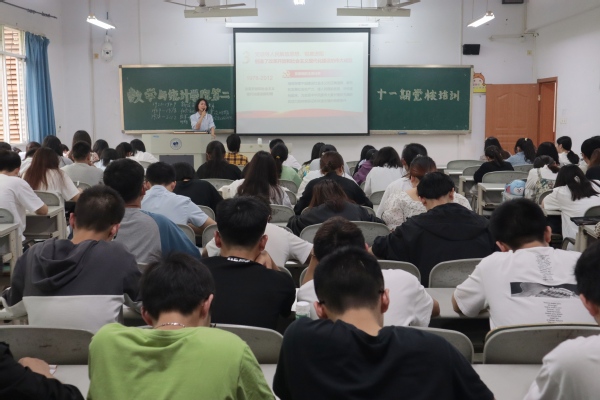 培训开始,任琼老师分别抽取各年级员工代表讲述自己的入党动机,接着,任琼老师结合自己的入党经历向同学们表明入党动机要发自内心的清澈、要有使命感。随后,任琼老师以党的十九届六中全会为重点进行此次党校培训。从中,任琼老师就20世纪中国共产党对中国发展的四个重要时期所做出的伟大成就进行阐述,通过两个结合、十个明确表明新时代催生新思想,通过十三个方面、两个确立介绍新时代的历史性成就和历史性变革。培训尾声,任琼老师表示,希望同学们多阅读相关书籍,真正产生与党的共鸣。