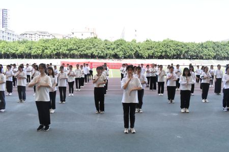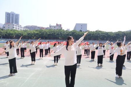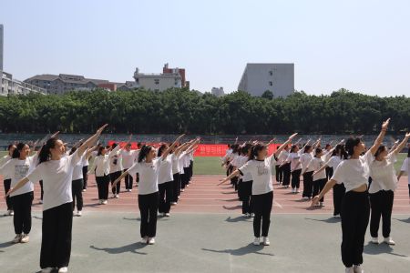 各参赛班级的同学们着装统一,以整齐的队形站立在主席台前。音乐响起,同学们用优美的肢体语言展现出一个又一个函数图形。各个班级别出心裁的装饰更增添了函数操的美感。
