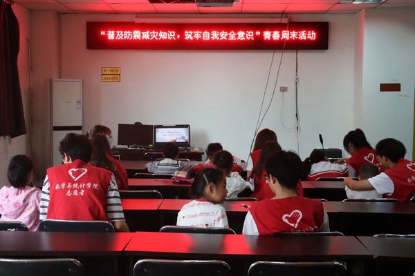 活动伊始,志愿者们耐心地为小朋友们辅导作业、解疑答惑。随后,志愿者们围绕“普及防震减灾知识,筑牢自我安全意识”该主题,结合PPT从地震是什么、地震的由来、如何应对地震、我们能够做什么这四个方面进行详细讲解。讲解途中,志愿者们还利用视频播放、知识竞答的方式,生动形象地向小朋友们传播地震的相关知识,加强他们对地震的认识,培养其预防灾害的意识。最后,志愿者们带领小朋友们进行了“地震来了快快逃”的小游戏,旨在潜移默化中增强其自我安全保护意识。