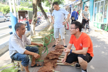 祥和社区党支部宣传人员况刚健引领志愿者来到祥和社区特色蔑货市场,志愿者们了解到蔑货市场是非物质文化遗产,经营的有手工蔑货,有背篓、簸箕、筛子、蒸笼等。活动结束后,志愿者们纷纷表示通过此次实地调研了解到了祥和社区的发展近况,近几年祥和社区致力于改善基础设施,大大的提高了居民的幸福感,志愿者们也感叹非物质文化遗产的博大精深、令人震撼。