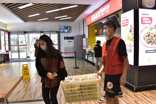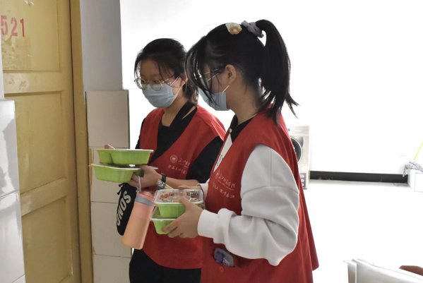 送餐过程中,参与人员应疫情防控要求,全程佩戴口罩并进行全面消毒,采用无接触送餐的方式,为居寝健康管理的同学送去午餐和晚餐。此外,参与人员在满足同学用餐需求的同时,对同学们进行思想上的引导和心理上的安抚,并为校园防疫的落实贡献力量,积极传播互助友爱的志愿者精神。