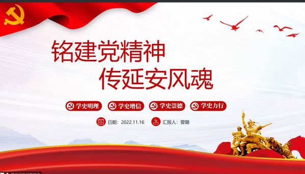会议上,曾老师提到在波澜壮阔的奋斗历程中,我们党弘扬伟大建党精神,形成了井冈山精神、延安精神、西柏坡精神等一系列伟大精神,这些伟大精神是党和人民的宝贵精神财富,深深融入到了我们党、国家、民族乃至人民的血脉之中。随后,曾老师阐述了“延安精神”的深刻内涵,她指出延安精神是中国共产党人彻底的革命精神、是升华了的民族精神、是中国共产党人领导争取民族独立、人民解放的时代精神、是展示中国共产党人形象的群体精神。最后,曾老师强调同学们应弘扬伟大建党精神,不断提升自我,积极向党组织靠拢。