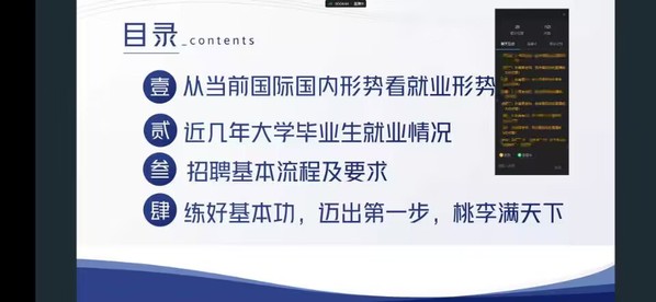 讲座过程中,孙董事长从当前国际形势看就业形势、近几年老员工毕业生就业情况、招聘基本流程及要求、练好基本功四个方面进行讲述。孙董事长通过案例、数据让同学们感受当今经济压力下的严峻就业形势。紧接着,孙董事长叙述了教师招聘基本流程,其中包括简历筛选、做题、试讲、面试交流四个步骤。孙董事长还提出同学们要以“他人为先,真诚待人,主动沟通”的基本原则进行面试,并且要注重个人仪容仪表和基本礼仪,让同学们更深一步了解教师招聘的基本流程及要求。最后,孙董事长鼓励同学们在面对就业压力时既要增强忧患意识,又要调整好心态,为未来做好详细的规划。