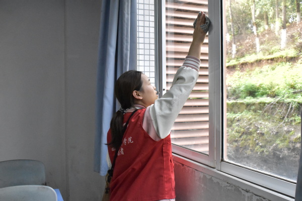 志愿者们有序整合队伍,领取清扫卫生工具,以认真负责的态度迅速投入到活动中来。他们穿梭于各间教室,分工明确、相互协作,不说苦、不喊累、不怕脏,认真擦拭桌椅、黑板和窗户,仔细清扫地面及各处卫生死角,从身边小事做起,用行动诠释风采,为数统学子呈现干净整洁、舒适温馨的学习自习室环境。