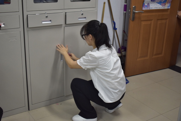 活动过程中,毕业生们积极完成各项卫生清洁工作。他们热情高涨、全情投入,认真细致地做着每一项工作,打扫教室地面、擦拭玻璃、整理清扫实验室、检查相关配置设备、拾捡公区周围的垃圾等。