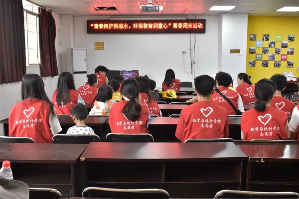 活动开始,志愿者们耐心地为小朋友辅导作业、解答疑惑,并带领小朋友们阅读书籍、回顾上一周所学习的古诗,畅游在知识的海洋里。紧接着,志愿者们通过ppt展示、视频播放等形式从“了解溺水”、“预防溺水安全知识”、“水环境保护”等方面进行课堂教学,向小朋友们传达预防溺水的措施、溺水时的自救方法以及同伴溺水时的正确施救方法。此外,活动还设置了有奖竞答环节,通过问题抢答充分调动小朋友们的积极性,让他们在竞答中深入理解预防溺水的相关知识。最后,志愿者们和小朋友们共同唱响《红星闪闪》,此次活动在欢声笑语中落下帷幕。