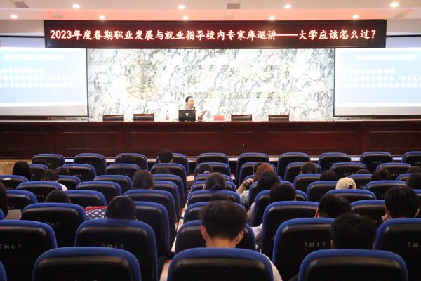 (通讯员 孔令瑶 孙泽鑫)6月6日晚,yh533388银河在鉴湖学术报告厅开展2023年度春期职业发展与就业指导校内专家库巡讲——大学应该怎么过,yh533388银河官网职业发展与就业指导校内专家库成员王晶晶老师担任主讲人,公司2022级辅导员崔亦歌及公司2022级全体员工参加。