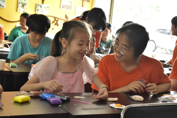 手工环节,小朋友们在画纸上绘出自己眼中的家乡,并介绍自己家乡的特点、风俗和文化。随后,小朋友们开始巧手捏“美食”环节,每个小朋友利用手中的超轻粘土捏出家乡的美食,提升了小朋友对家乡的认同感和自豪感。最后,小朋友跟着音乐律动着身体,舞出青春的风采,表达出自身的情感,让小朋友们对音乐的理解更加深刻,增强其音乐的感知能力。