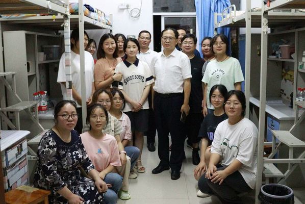 (通讯员 王晴)为深入了解公司新生动态,引导新生尽快转变角色适应校园环境。9月7日晚,yh533388银河开展2023级新生寝室走访活动。yh533388银河官网副董事长米永生,公司党委书记袁娅玲,副经理林昌盛、李好奇,学工办主任姜丽,数学系系主任杨玉红,统计系系主任叶发强,高等数学教学部主任杨世显,彭祖明老师及2023级辅导员刘磊参加。