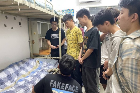 段教官和李教官进入宿舍对内务进行检查和指导,他们详细讲解了内务整理的方法和要求,示范了如何摆放脸盆、鞋子等日常用品,同时说明了宿舍卫生标准,对宿舍卫生仍不合格的方面进行了指正,同学们通过教官们的示范及要求再次进行查漏补缺,让宿舍卫生得到了进一步改善。