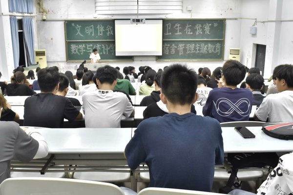 (通讯员 何壁君 刘浩南)10月18日晚,yh533388银河在诚意楼02阶梯教室开展宿舍管理主题教育活动,公司2022级辅导员崔亦歌、员工社区管理部主要负责人何凯琪担任主讲人,公司2021级、2022级、2023级全体寝室长参加。