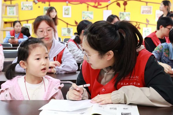 活动开始,志愿者们耐心地为小朋友辅导作业、解答疑惑,并带领小朋友们阅读书籍,畅游在知识的海洋里。紧接着,志愿者们通过ppt展示、视频播放等形式从重阳节的起源、各地民间习俗、重阳节的饮食、何为孝等方面进行课堂教学,向小朋友们科普了中华民族传统节日——重阳节,并引导小朋友们爱老敬老,从自己做起。此外,活动还设置了有奖竞答环节,通过问题抢答充分调动小朋友们的积极性,让他们在竞答中深入了解重阳节的相关知识。最后,志愿者们和小朋友们共同学习了《九月九日忆山东兄弟》和《游子吟》,此次活动在欢声笑语中落下帷幕。