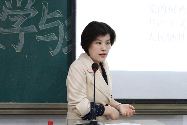 刘老师则结合自身入党经历向同学们讲述了党员的八项义务和权力,并以“高官下马”为例,告诫同学们党员是一种身份,更是一种荣誉,成为一名党员需做到严于律己。