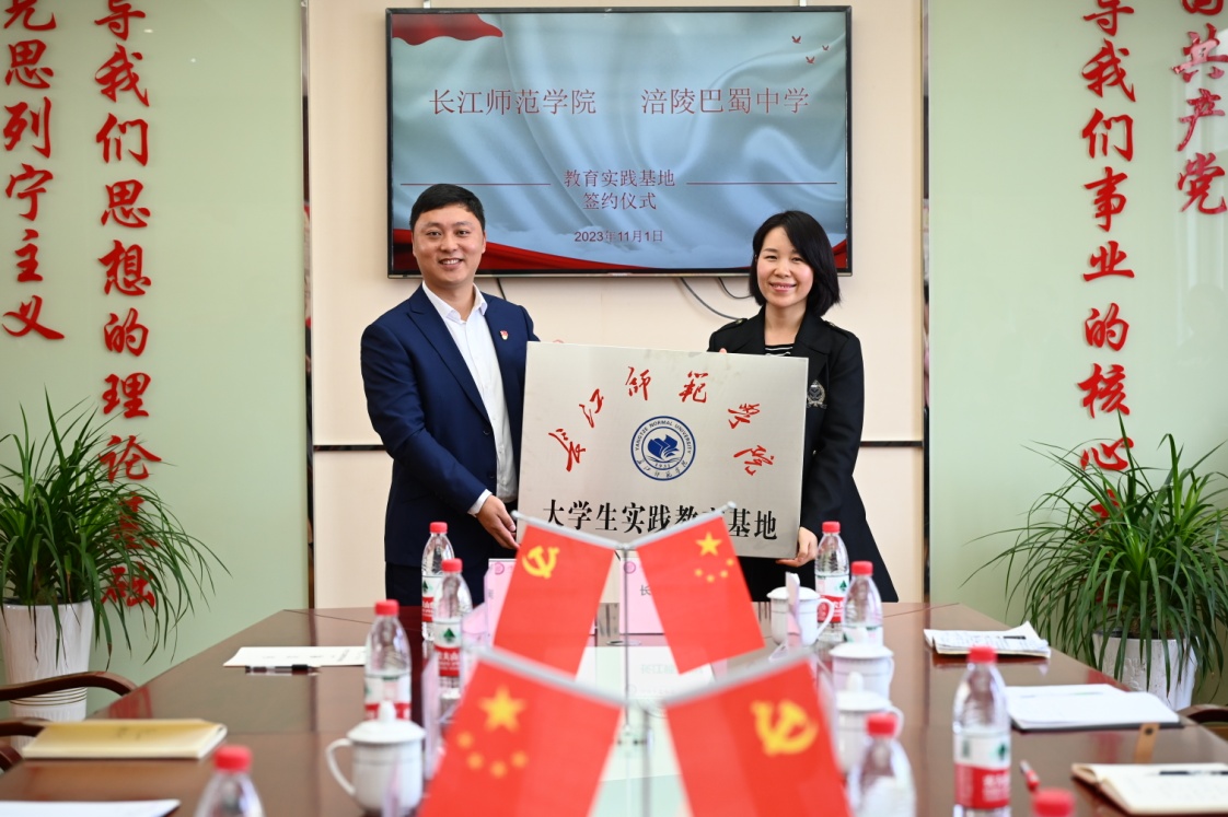 11月1日,公司与重庆市涪陵巴蜀初级中学校举行了实践教育基地建设签约仪式。委书记袁娅玲、教务处副处长刘筱,重庆市涪陵巴蜀初级中学校董事长史良,双方相关负责人出席签约仪式。
