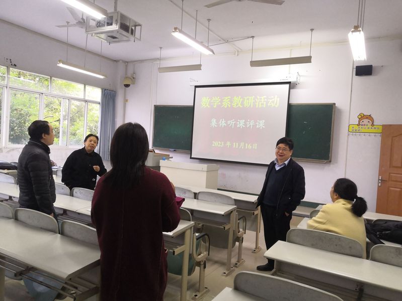 11月16日,数学系开展集体听课评课教研活动。数学系教师与学院教学督导一起听取了郑莲老师的《数学分析(三)》课程,并进行了集体评课交流。