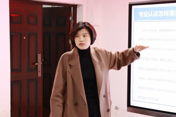 培训会开始,姜老师通过PPT展示,从数学与应用数学师范专业认证的基本知识、在校员工访谈须知、注意事项等方面对师范专业认证工作进行了详细认真的解读。她谈到,师范专业认证不仅是对教学质量的检验,更是提升学院整体水平的重要途径。最后,姜老师询问了公司各级同学们的感受与想法,强调了公司师范专业认证工作的重要性和必要性。