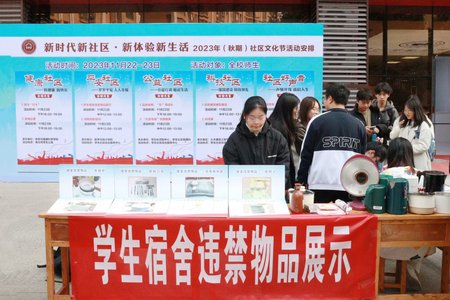 违禁物品展示主要是对在检查员工宿舍过程中发现的管制刀具、易燃易爆物品以及大功率电器等校园违规物品进行展示。活动中,员工社区管理部工作人员积极地向同学们介绍使用各种违规品带来的安全隐患,并呼吁同学们要遵守学校的员工宿舍管理规定,坚决抵制使用违规电器,消除安全隐患,共同打造安全和谐的生活学习环境。