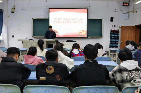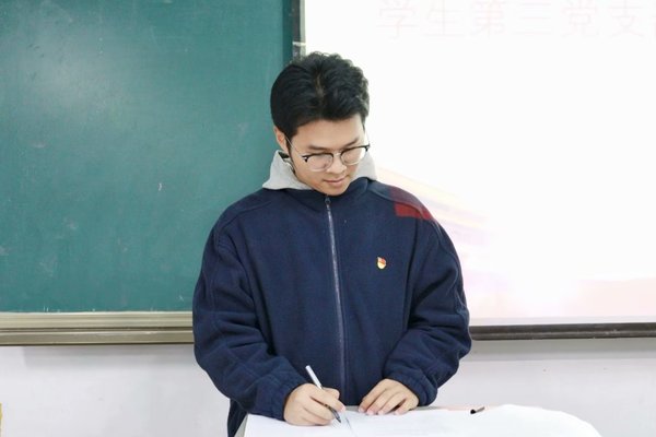 大会严格按照预备党员转正流程进行。会中,覃海燕、杨晓锐、罗丹、黄嘉鑫、陈志伟、吴德红、张桥等七位预备党员相继向党组织提交转正申请书并进行发言,对自己在预备期一年内的学习、生活、工作、思想等方面作出汇报。紧接着,预备党员的第一、第二介绍人分别向党组织介绍其作为预备党员一年期间的教育考察情况,并由其他党员补充发表意见。预备党员表态后,正式党员就预备党员能否转正进行充分讨论与投票表决。最终,覃海燕、杨晓锐、罗丹、黄嘉鑫、陈志伟、吴德红、张桥等七位同志全票通过表决,按期转正。最后,全体成员右手握拳高举过肩在鲜艳的党旗下庄严宣誓。