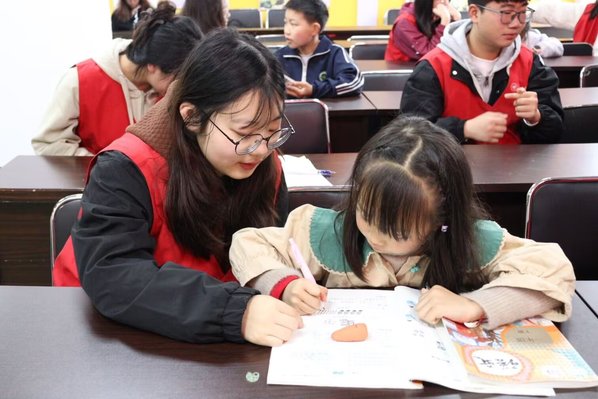 活动开始,志愿者小朋友们辅导作业,并让其阅读书籍增长知识。课上,志愿者通过PPT展示、视频播放等方式进行课堂教学介绍身边的科学、科学是什么、宇宙十大奥秘,并采取有奖竞答的形式活跃课堂氛围,调动小朋友们对学习的兴趣。休息之余,志愿者带领小朋友们唱《学习雷锋好榜样》最后,志愿者带领小朋友们进行狼和兔子的小游戏,培养其合作意识和沟通能力,活动也在一片欢声笑语中结束。