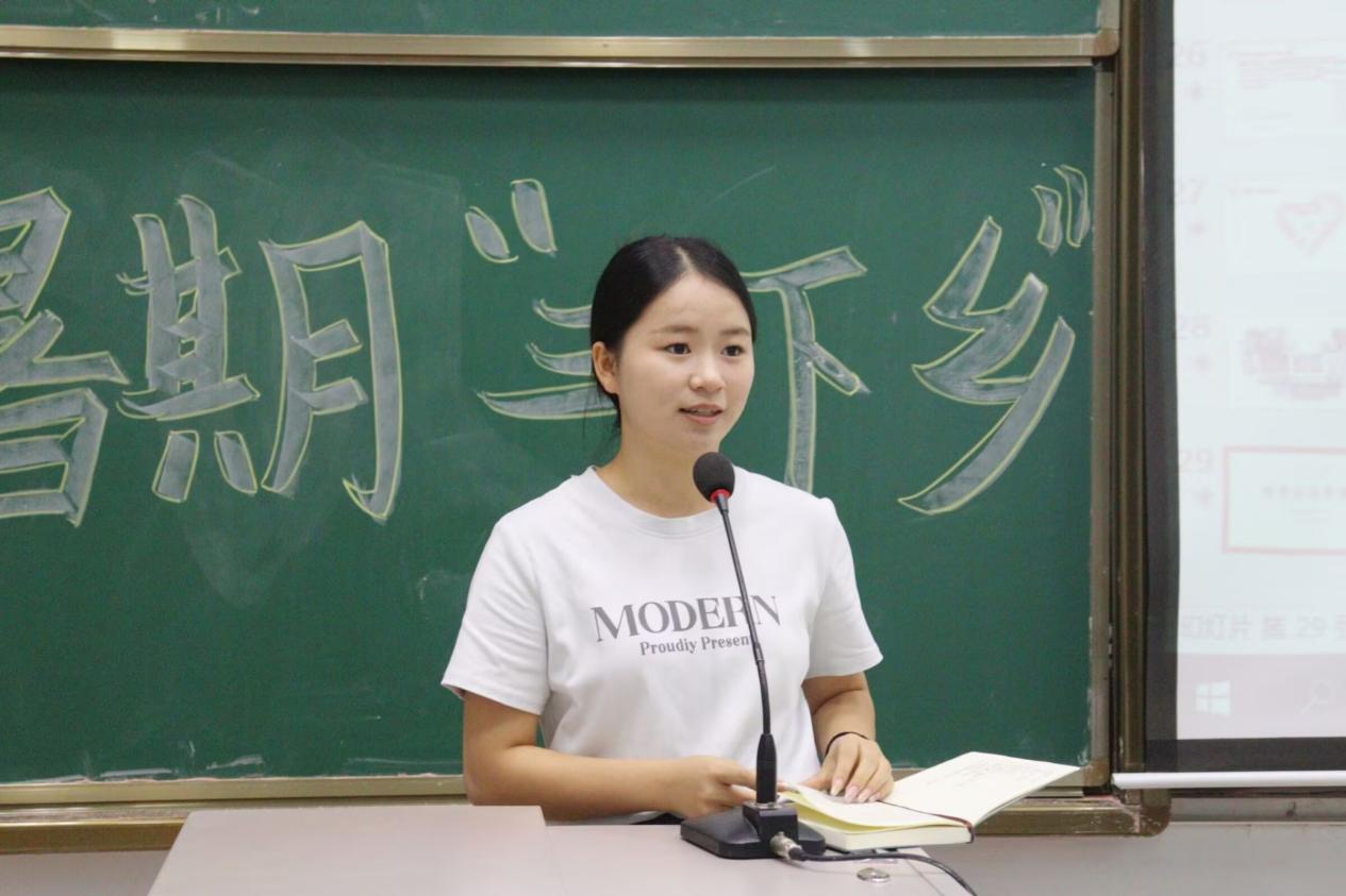 三下乡负责人段川兰同学代表全体志愿者对此次三下乡社会实践活动进行成果汇报。
