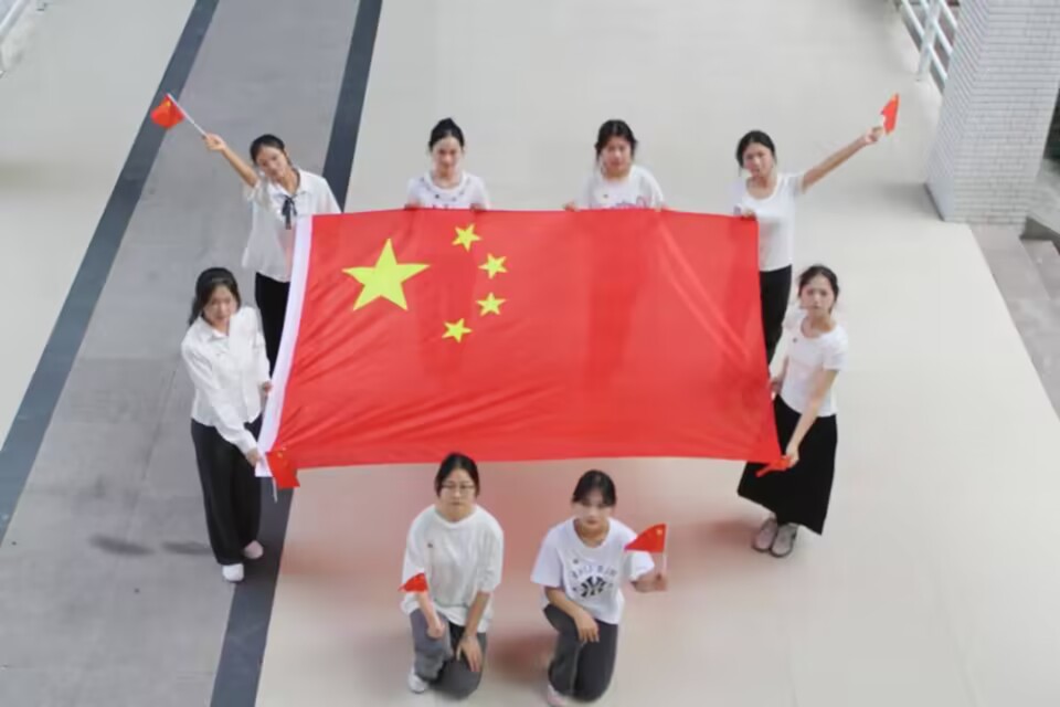 活动伊始,同学们身着整洁的衣服,手持小国旗,佩戴着有国旗元素的饰品,以最诚挚的笑容和坚定的眼神望向镜头。在拍照的瞬间,他们的脸上洋溢着自豪和幸福,仿佛在与国旗进行一场无声的对话,诉说着对祖国的热爱和敬意。自由合影环节中,他们更是充分发挥创意,以多样的角度和形式,在学院的各个角落留下了与国旗合影的珍贵瞬间,他们用自己的方式表达了对祖国的祝福和期望。