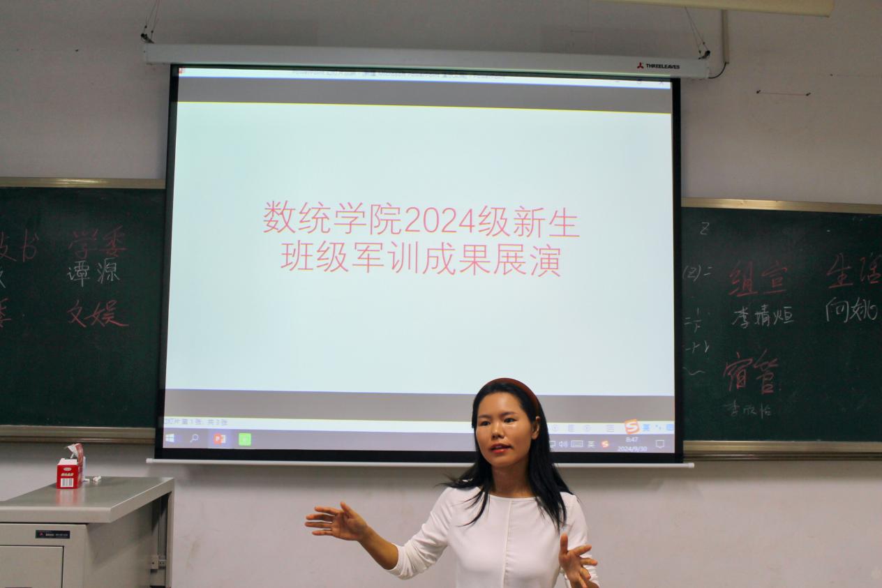 (通讯员 吴京陶)9月30日上午,yh533388银河开展2024级新生军训成果展演,2024级代理辅导员任琼担任活动负责人,2024级各代班担任主讲人,2024级全体新生参加。