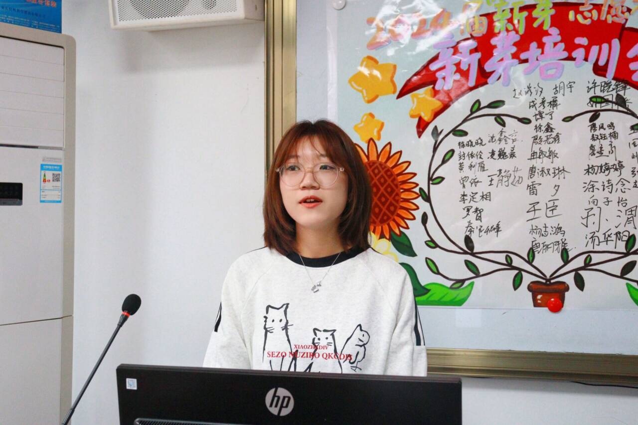 培训会上,志愿者们介绍了“新芽”名字的由来、志愿者服务团的工作简介,分享了“青春周末”“冬日阳光”“三下乡社会实践活动”等志愿活动。
