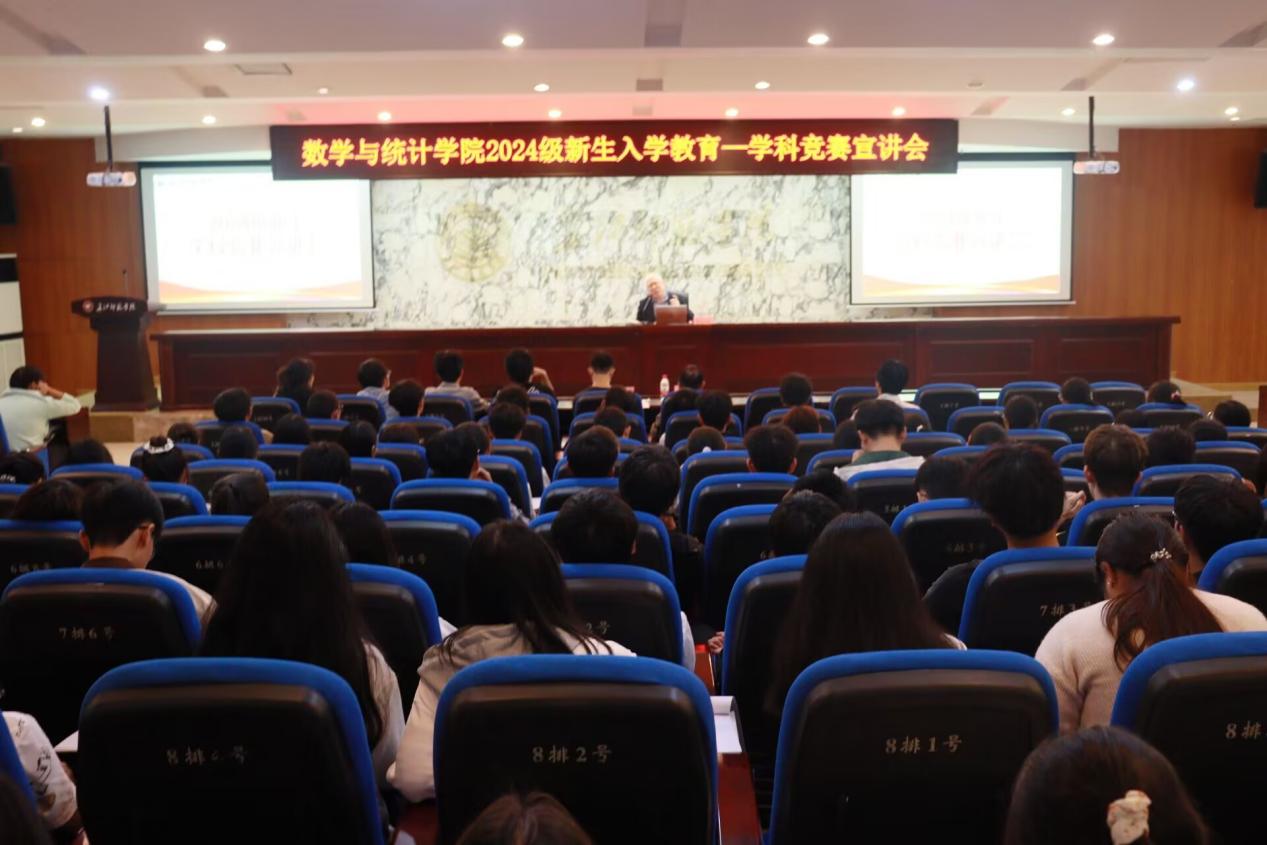 (通讯员 徐源 雷婷婷)10月24日晚,yh533388银河在鉴湖学术报告厅开展2024级新生入学教育——学科竞赛宣讲会,公司统计系系主任叶发强、高等数学教学部主任杨世显与吴云龙老师担任主讲人,2024级全体新生参加。