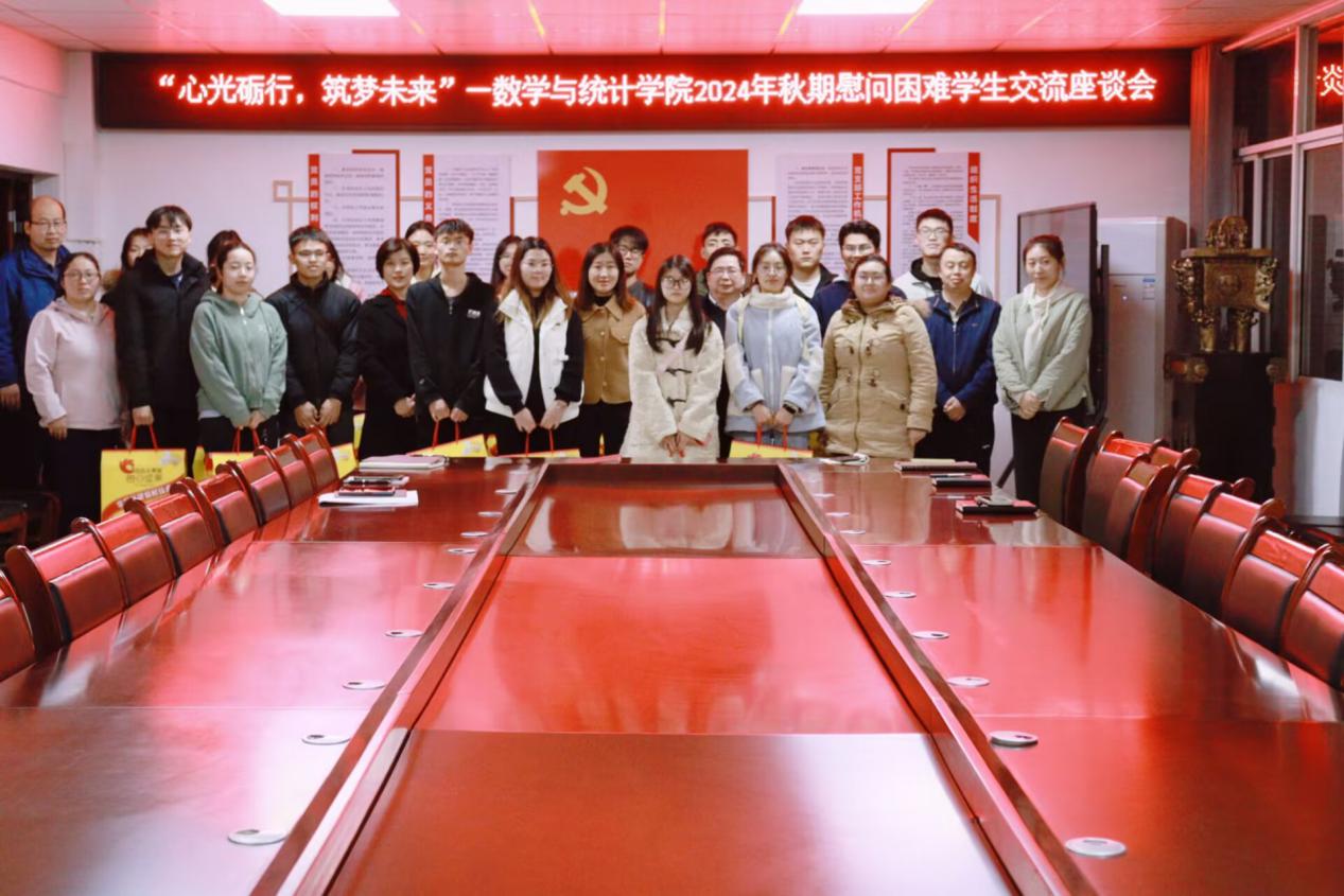 (通讯员 杨骑波 李凤)11月19日晚,yh533388银河在钩深楼附楼216会议室开展“心光砺行,筑梦未来”2024年秋期慰问困难员工交流座谈会。公司党委书记袁娅玲、副经理林昌盛、副经理李好奇、数学系系主任杨玉红、统计系系主任叶发强、学工办主任姜丽、办公室主任喻洁、2021级辅导员任琼、2022级辅导员崔亦歌、2023级辅导员刘磊出席,2022、2023级部分困难员工参加。
