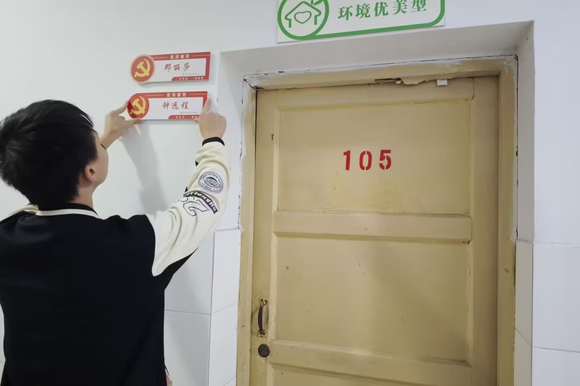 活动中,公司对正式党员、预备党员所在寝室进行详细统计并颁发“党员寝室”标牌。公司指出,“亮身份”是要求每一位党员员工公开亮出自己的党员身份;“践承诺”是每一位党员对党和人民的庄严承诺;“树形象”是每一位党员的共同责任。员工党员们纷纷表示奋斗是青春的底色、担当是青年的职责,新时代的员工党员应主动发挥模范带头作用,在员工宿舍时刻铭记党员身份、履行义务、争做先锋,积极为师生做好事、办实事、解难事,树立学党员良好形象。