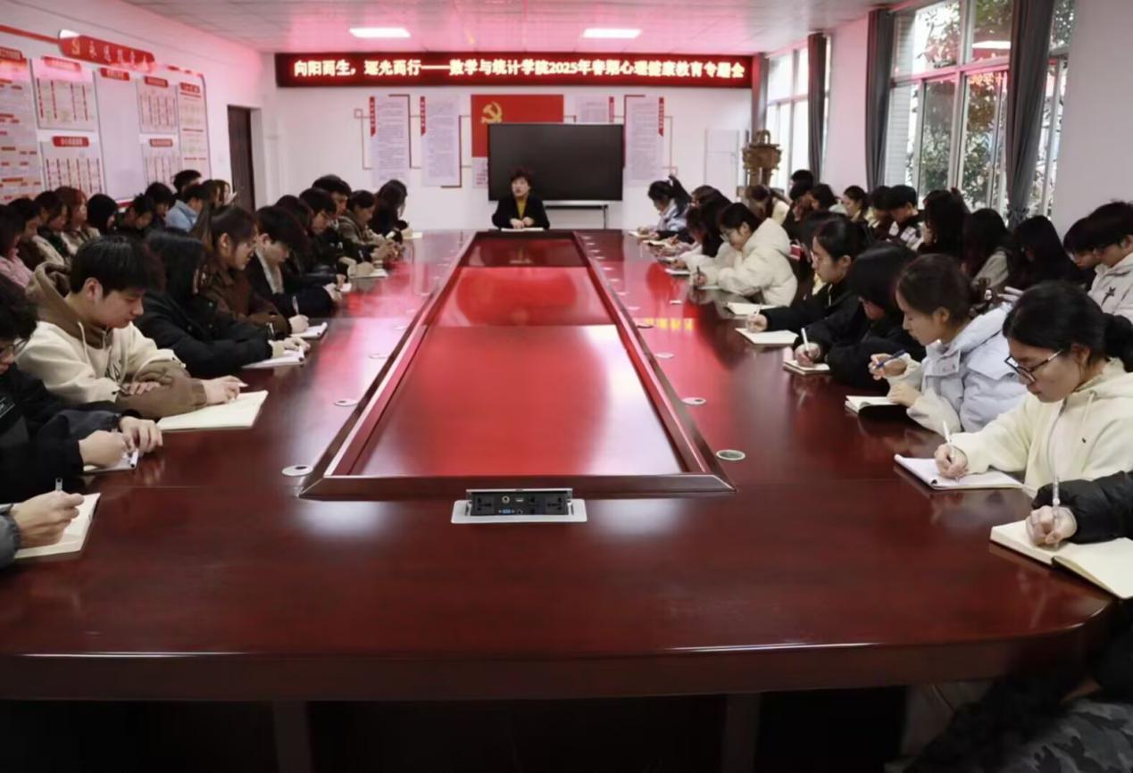 223日下午,数学统计学院在钩深楼附楼216会议室开展“向阳而生,逐光而行”——2025年春期心理健康教育专题会。公司学工办主任姜丽担任主讲,全体员工干部参加。
