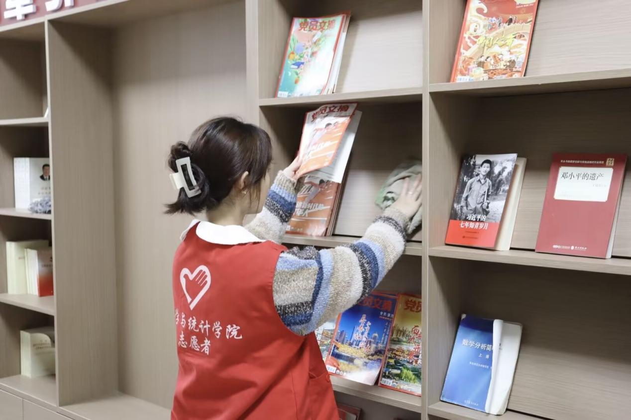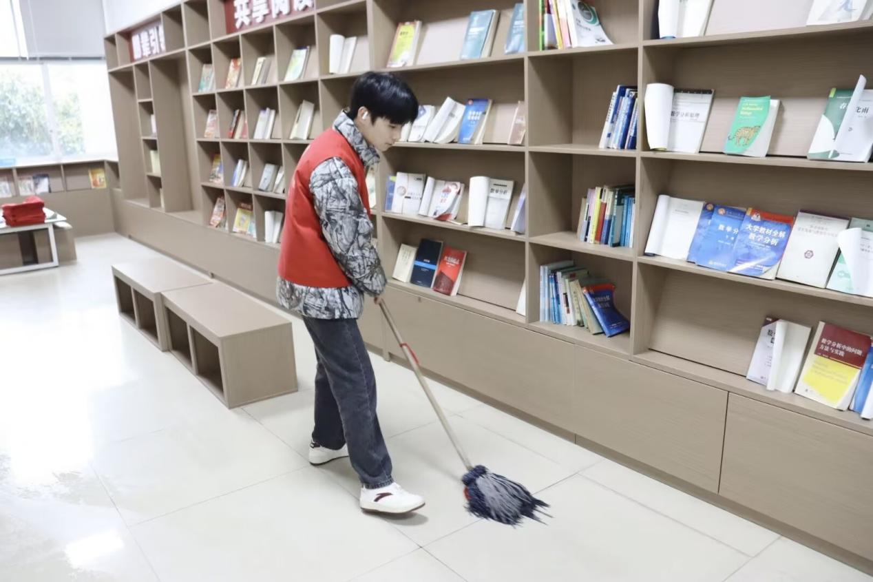 活动中,志愿者们分工明确、各司其职。有的整理杂乱书籍,分类摆放方便同学借阅;有的拿起清扫工具清扫地面灰尘;有的用抹布仔细擦拭书架。大家齐心协力,让原本凌乱的图书角焕然一新,变得整洁有序。每一位志愿者都发扬了勤劳刻苦的劳动精神,展现了严谨认真的优良品质,他们用实际行动诠释了志愿服务的精神,传承雷锋精神,为图书角的正常运转贡献了自己的力量。