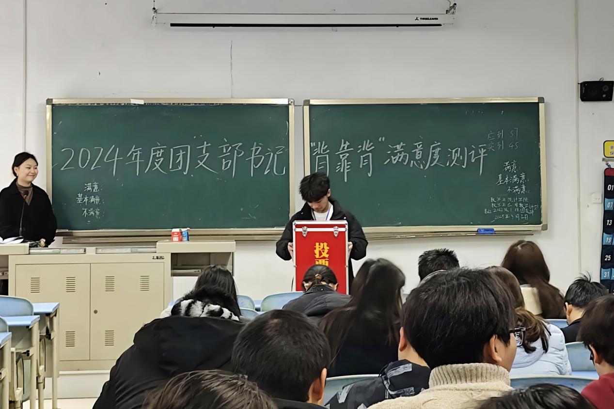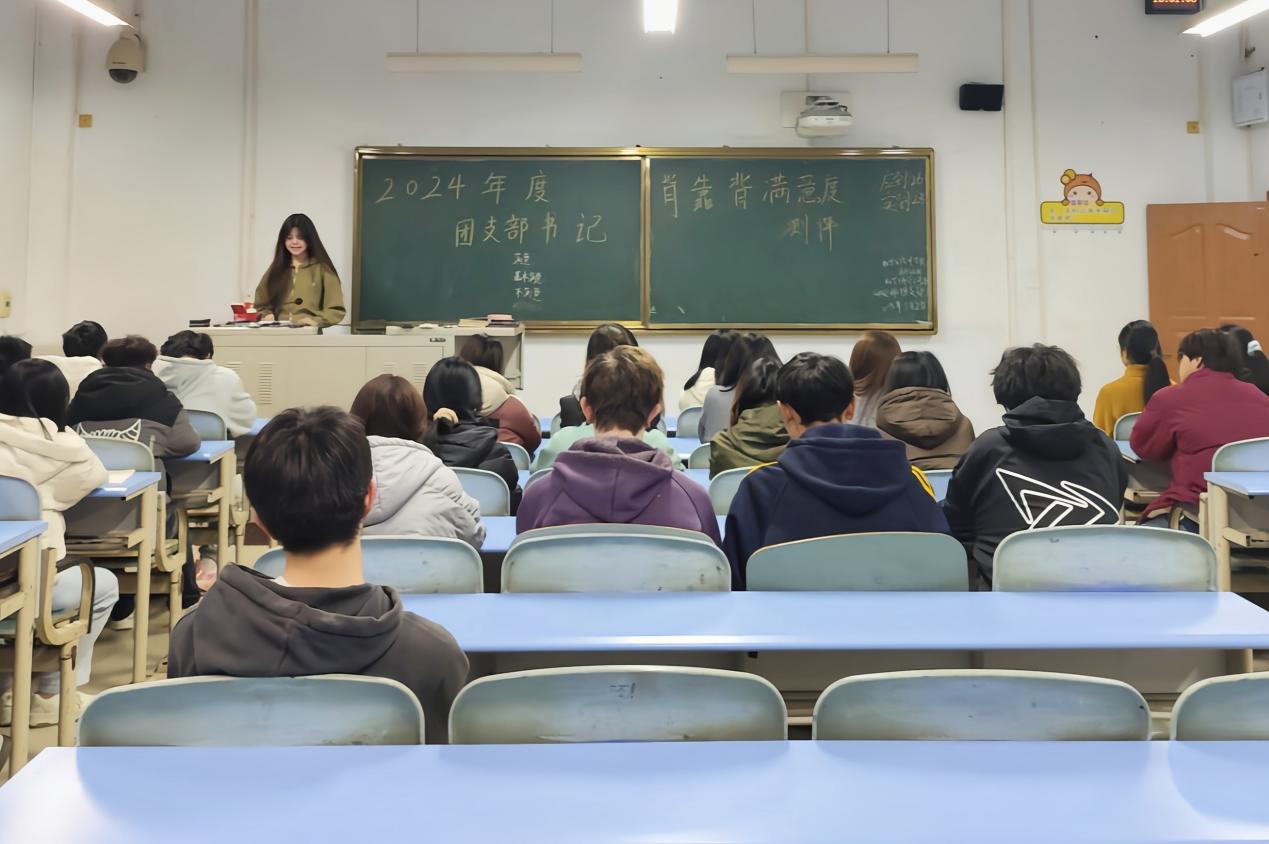 活动开始,全体团员庄严肃立,共同奏唱团歌。随后,各班团支部书记上台进行述职汇报,围绕过去一年详细阐述工作成果,认真反思存在的不足,并对未来工作提出切实可行的规划。团员们根据团支部书记的述职内容以及平时的工作表现,从工作态度、工作能力等多个方面,进行客观公正的投票。投票结束后,计票员和监票员当场公布测评结果。