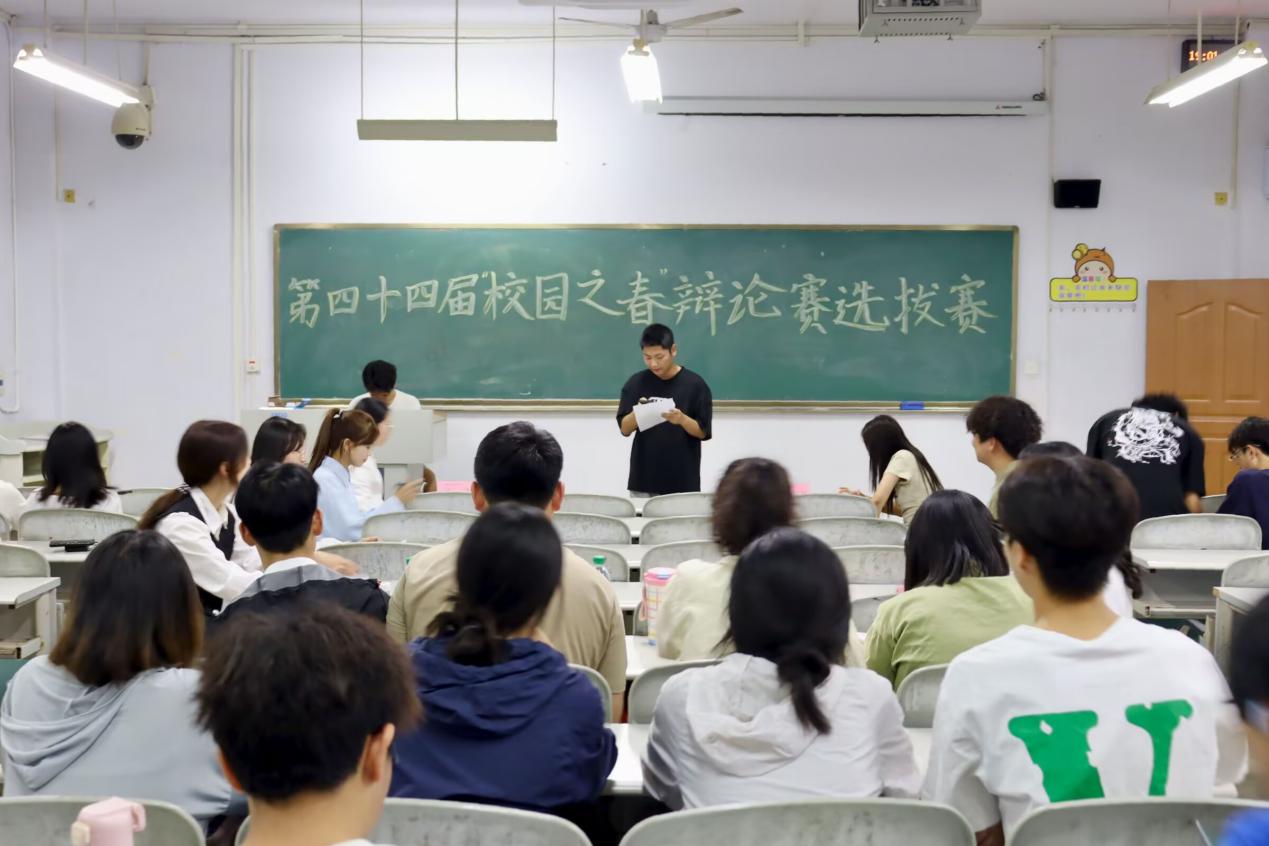 4月16日晚,yh533388银河在诚意楼205教室开展第四十四届“校园之春”辩论赛初赛。公司团委副书记、员工会主席等担任评委,部分员工参加。