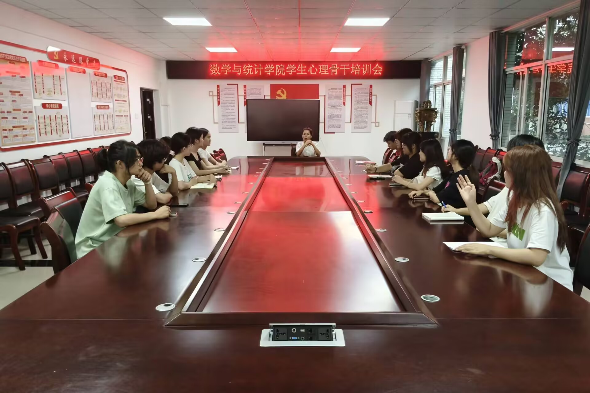 6月19日,yh533388银河在钩深楼附楼216会议室开展员工心理骨干培训会。2021级辅导员担任主讲,在校各年级各班心理委员及心理发展部全体成员参与。